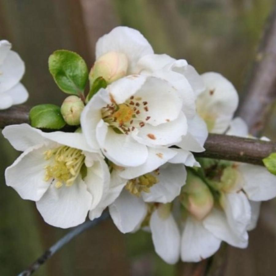 Сначала пряморастущий, потом раскидистый, лиственный кустарник. Побеги покрыты колючками. Листья мелкие, зелёные. Обильно цветёт одиночными цветками чистого белого цвета с апреля по май. Повторное цветение в августе. Плоды яблоковидные до 8 см в диаметре, зелёные, позднее жёлтые, очень твёрдые. Обрезка: Не нуждается. Полив умеренный. Высаживать на солнце или в полутени. Хорошо растёт на любых садовых почвах. Используется для групповых и одиночных посадок.