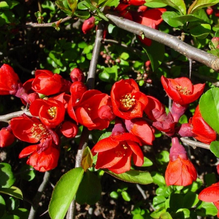 Густой кустарник с колючими ветвями, высотой до 2,5 м. Сначала пряморастущий, потом раскидистый. Среднего размера красные цветы распускаются рано весной, до появления листьев. Плоды шаровидные, зелено-желтые, массой до 90 гр.