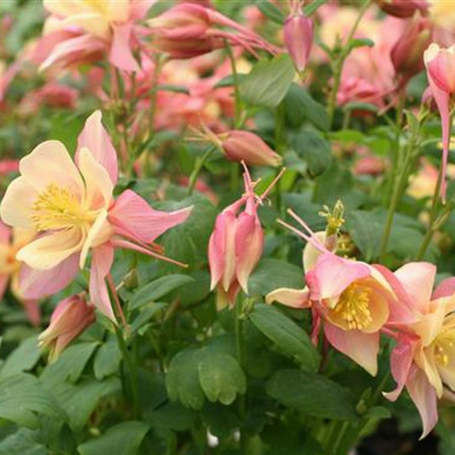 Цветение очень обильное. Крупные цветы ярких расцветок. Высота растения: 50-60 см. Ширина: 30-36 см. Вынослив, устойчив к капризам погоды, прекрасно зимует в условиях российского климата, нетребователен к освещённости и полутень для него — не наказание. Цветёт в первой половине лета. Особенно привлекательна аквилегия в групповых посадках