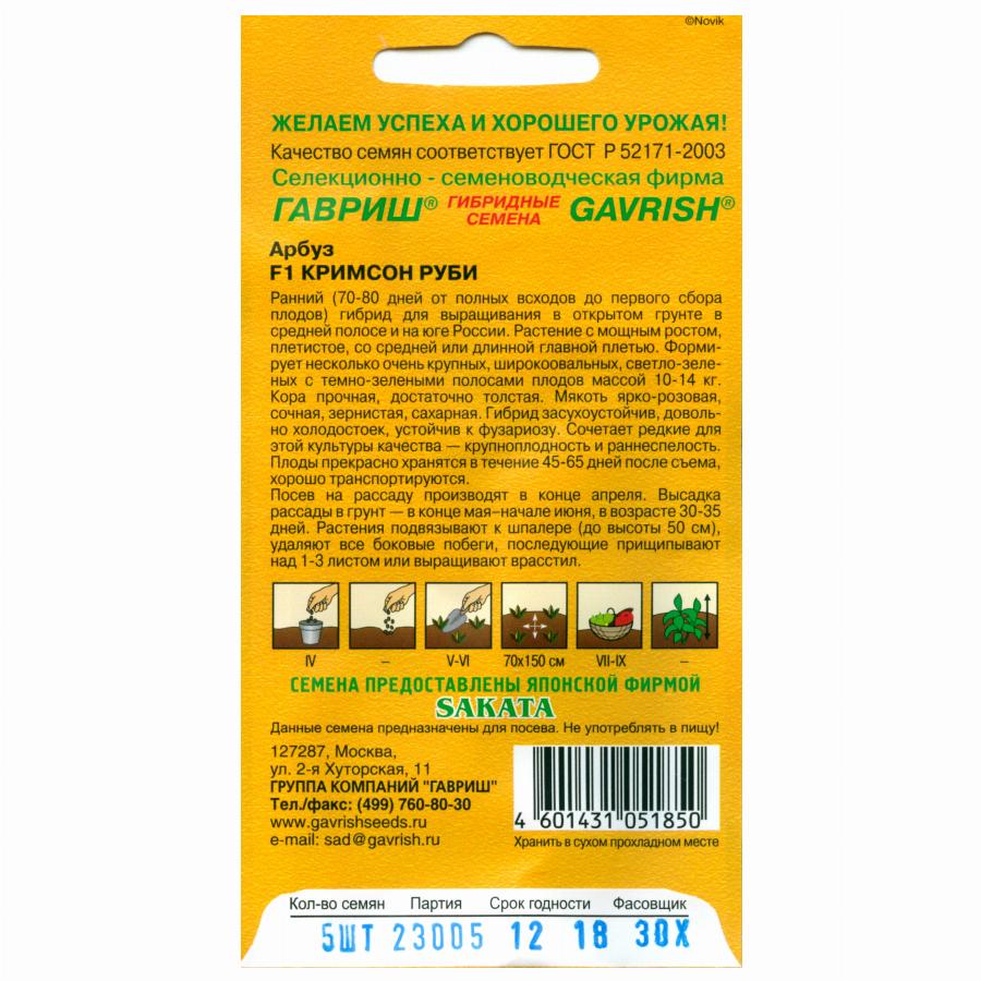АРБУЗ КРИМСОН РУБИ F1 5 ШТ гавриш