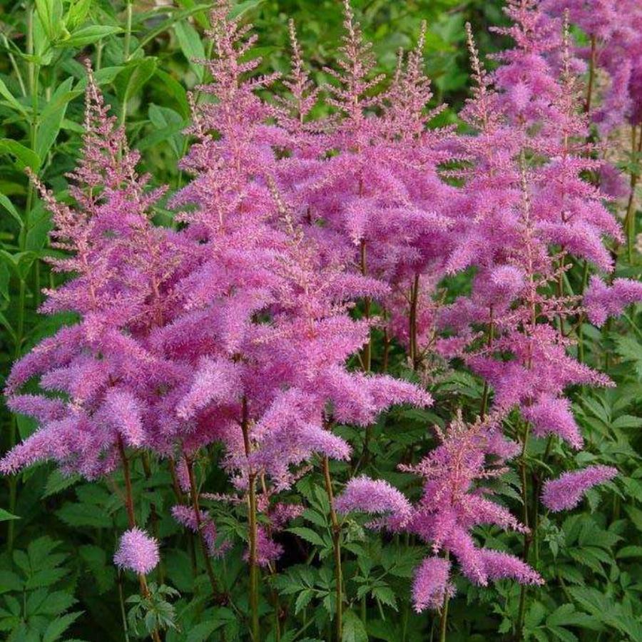 Астильба Арендса ‘Аметист’. Ярко-сиреневое пышное крупное соцветие этой астильбы всегда приковывает к себе все взгляды! Красивая желтовато-зеленая, матовая листва! Высокий (70-80 до 100 см). Среднепоздний сорт, цветение июль-август. Цветет более 30 дней.