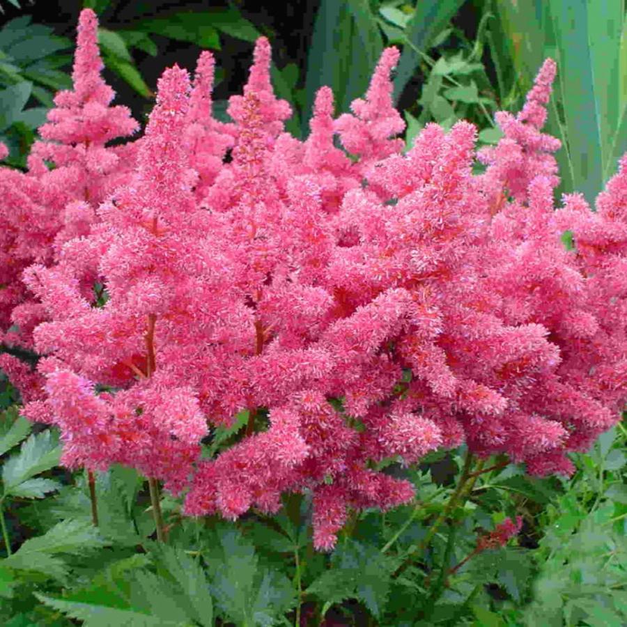 Астильба Арендса ‘Gloria Purpurea’ с темно-розово-сиреневыми цветками, зацветает в июле. Продолжительность цветения составляет более месяца, а массового цветения 16 дней. Соцветие плотное, ромбическое, длиной 17-20 см., диаметром 6-9 см. Растение в период цветения до 80 см. Листья ажурные, красивые, темно зеленые с бронзовым оттенком. Хорошо растет в полутени и на нейтральной почве.