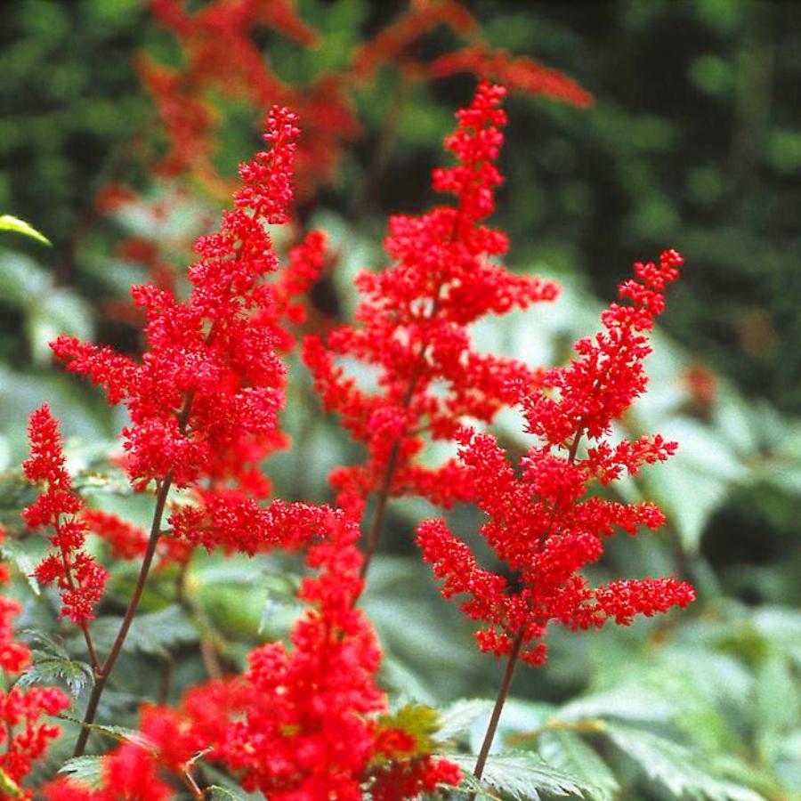 Астильба японская ‘Red Sentinel’ с яркими насыщенно-красными цветками, собранными в пышные метельчатые соцветия. Цветение раннее и продолжительное более одного месяца. Высота цветущей астильбы до 70 см. Хорошо растет в полутени и на нейтральной почве.