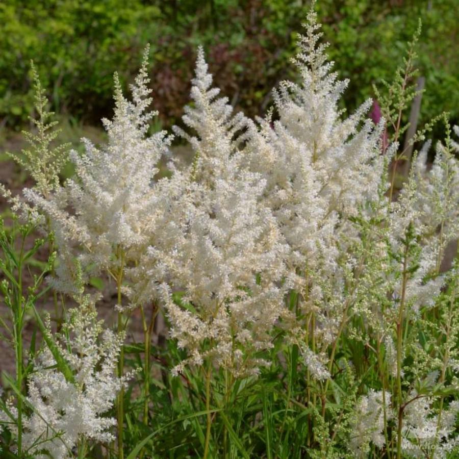 Кремово-белые цветы, темно-зеленая папоротниковидная листва. Высота 60-75 см.