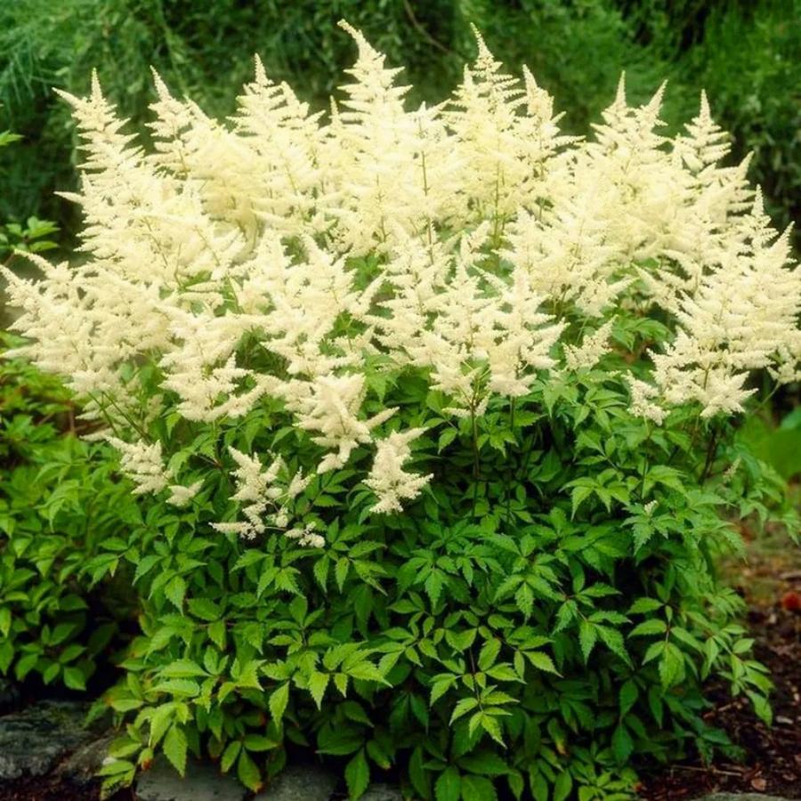 Растение компактное, высотой 50 см. Имеет некрупные белоснежные перистые соцветия и темно-зеленую крону круглой формы. Цветки мелкие, пушистые, собраны в обильные соцветия белого цвета. Цветет астильба Арендса с середины июня по август. Корневая система мощная, ветвистая. Срок жизни астильбы Арендса без пересадки 5-7 лет, при правильном уходе до 15 лет.