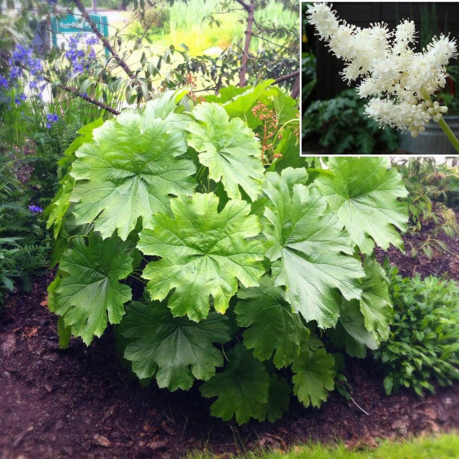Многолетнее растение до 100 см высотой с жесткими, пружинистыми листьями до 70 см в диаметре, на длинных, прочных черешках. Цветки мелкие, кремовые, собранные в метельчатые соцветия до 25 см длиной, поникающие к концу цветения. Цветонос до 150 см высотой. Цветет в июле 25-30 дней. Корневище поверхностное, толстое, ползучее.