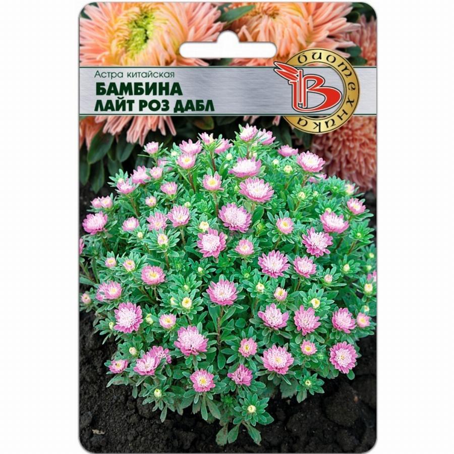 Абсолютно новый сортотип астры. Уникальное сочетание типа куста и формы цветка сортотипа “Мацумото” и карликовых качеств привели к потрясающему результату. Аналогов серии Бамбина нет в мировой селекции астры – это абсолютно уникальное растение. Одно растение формирует 40-60 боковых побегов второго порядка, формирующих цветки. Каждое отдельное растение представляет собой шаровидный куст, покрытый очаровательными цветками. Цветки диаметром 2-2,5 см, состоящие из ланцетовидных лепестков, расположенных по окружности в несколько слоев, чем ближе лепестки к центру цветка, тем они меньше, что обеспечивает очаровательную махровость. Высота растения 15-20 см, с активным ветвлением у основания. Использование – горшки, вазоны, оформление клумб. Посев: апрель-начало мая для цветения в августе-сентябре. Семена равномерно распределяют по поверхности подготовленного стерильного (для избежания поражения сеянцев черной ножкой) грунта, слегка присыпают субстратом, полив теплой водой. Прорастание: 12-16 дней при температуре 15-16 °С. Пикировка: в фазе 2-3 настоящих листьев растения пикируют в горшки диаметром 6 см. Оптимальная температура при выращивании 14-16°С. Высадка в грунт: рассаду высаживают в грунт в возрасте 40-50 дней. При высадке рекомендуется схема 15×20 см, 32 растения на м кв. Грунт: богатые гумусом суглинистые почвы, рН 5,5-6,5. Удобрение: комплексное минеральное, с преобладающим содержанием азота.