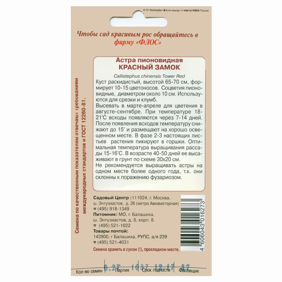 АСТРА ПИОНОВИДНАЯ КРАСНЫЙ ЗАМОК 0,2 Г флос