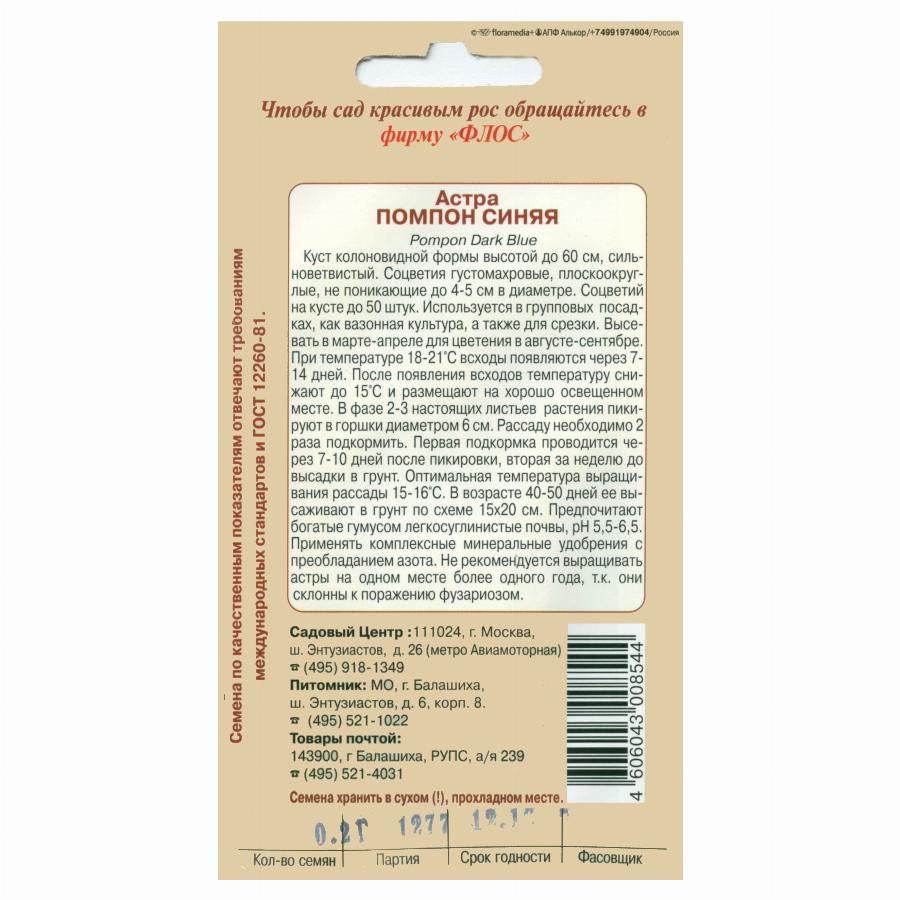Куст колоновидной формы высотой 60 см, сильноветвистый. Соцветия густомахровые, полусферические, не поникающие 4-5 см в диаметре. Соцветий на кусте до 50 штук. Используется в групповых посадках, как вазонная культура, а также для срезки. Высевать в марте-апреле для цветения в августе-сентябре. При температуре 18-21 С всходы появляются через 7-14 дней. После появления всходов температуру снижают до 15 и размещают на хорошо освещенном месте. В фазе 2-3 настоящих листьев растения пикируют в горшки диаметром 6 см. Рассаду необходимо 2 раза подкормить. Первая подкормка проводится через 7-10 дней после пикировки, вторая за неделю до высадки в грунт. Оптимальная температура выращивания рассады 15-16 С. В возрасте 40-50 дней ее высаживают в грунт по схеме 30Х40 см. Не рекомендуется выращивать астры наодном месте более одного года, т.к. они склонны к поражению фузариозом.