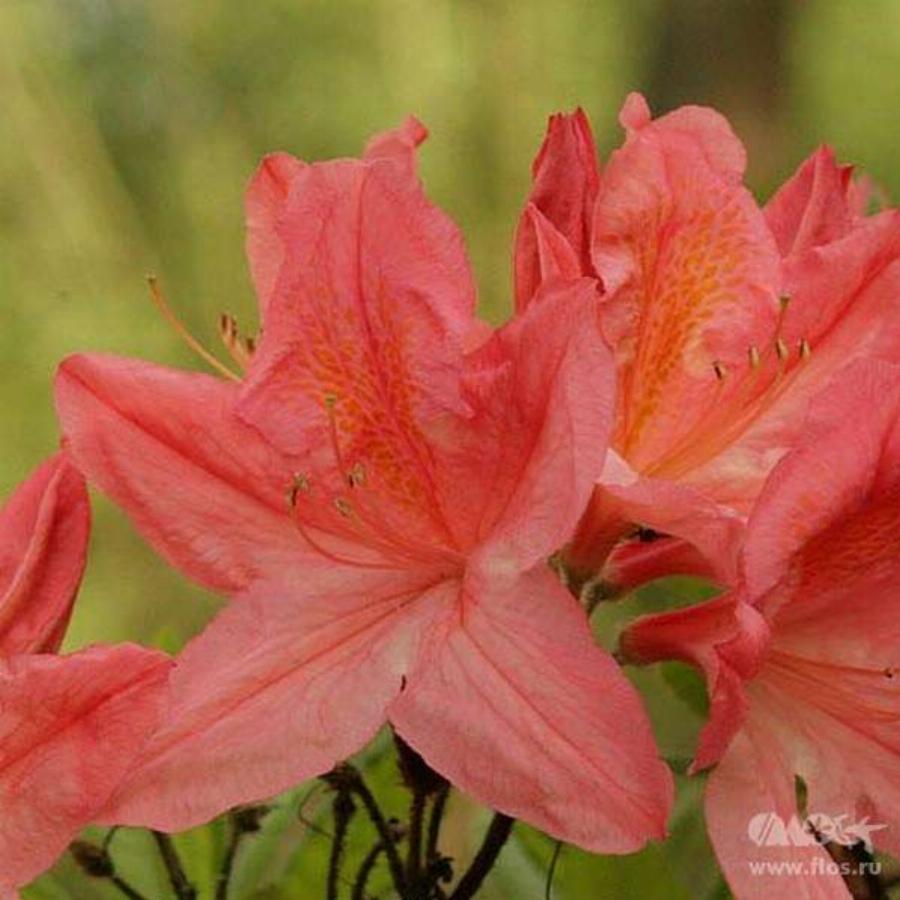Азалия листопадная mollis ‘Apple blossom’, высотой до 1.5 м. с крупными коралово-розовыми цветками. Отлично подходит для выращивания в средней полосе России и выдерживает зимние температуры до -30 С.