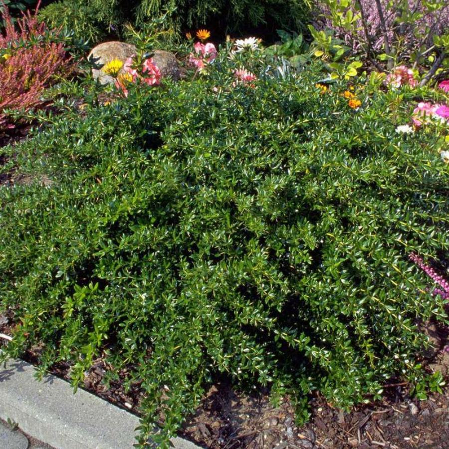 Барбарис сизо-белый. Н=50 см. Листья колючие, снизу серебристо-белые. Цветы золотисто-желтые, одиночные. Плоды — синие ягоды. Светолюбив.