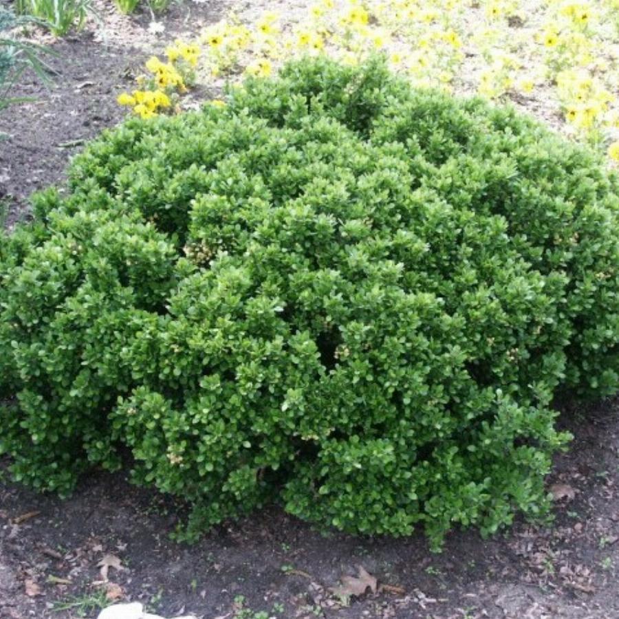 Барбарис самшитолистный ‘Nana’ Berberis buxifolia ‘Nana’. Вечнозеленый карликовый кустарник высотой до 0,5 м. Крона округлая, подушковидная. Цветы желто-оранжевые, эффектно выделяются на фоне темной листвы. Плоды темно-красные, с сизым налетом. Листья мелкие, темно-зеленые летом, осенью приобретают красноватый оттенок. К почвам нетребователен, хорошо стрижется. Наилучшего развития достигает на солнечных или полутенистых участках.