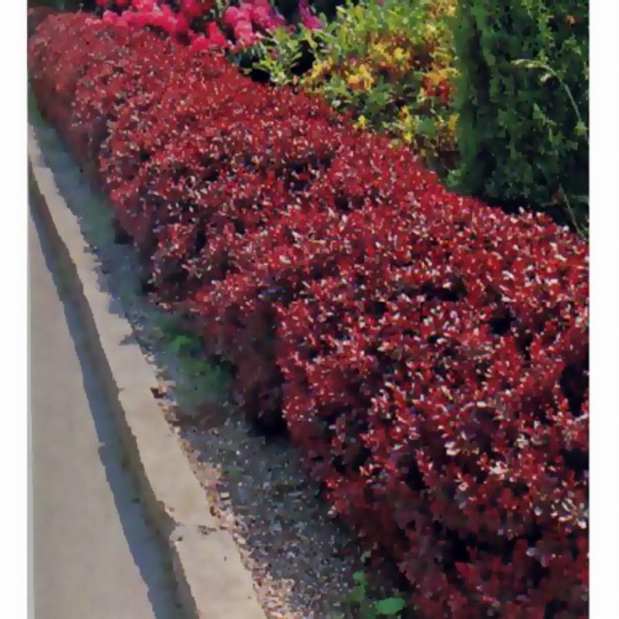 Барбарис tunbergii ‘Atropurpurea Nana’, карликовый сорт с шаровидной, затем подушковидной кроной, один из самых низкорослых барбарисов тунберга до 0,6м. высотой и 0,8м. диаметра. Листья яйцевидные, 1-2 см. длиной, насыщенно-пурпурные летом, шарлахово-красные осенью. Побеги, красиво изогнутые и почти не имеют колючек. Предпочитает посадку на солнце, в тени зеленеет.