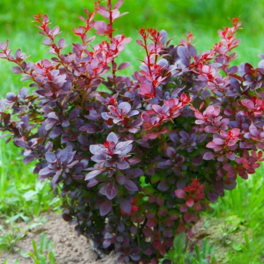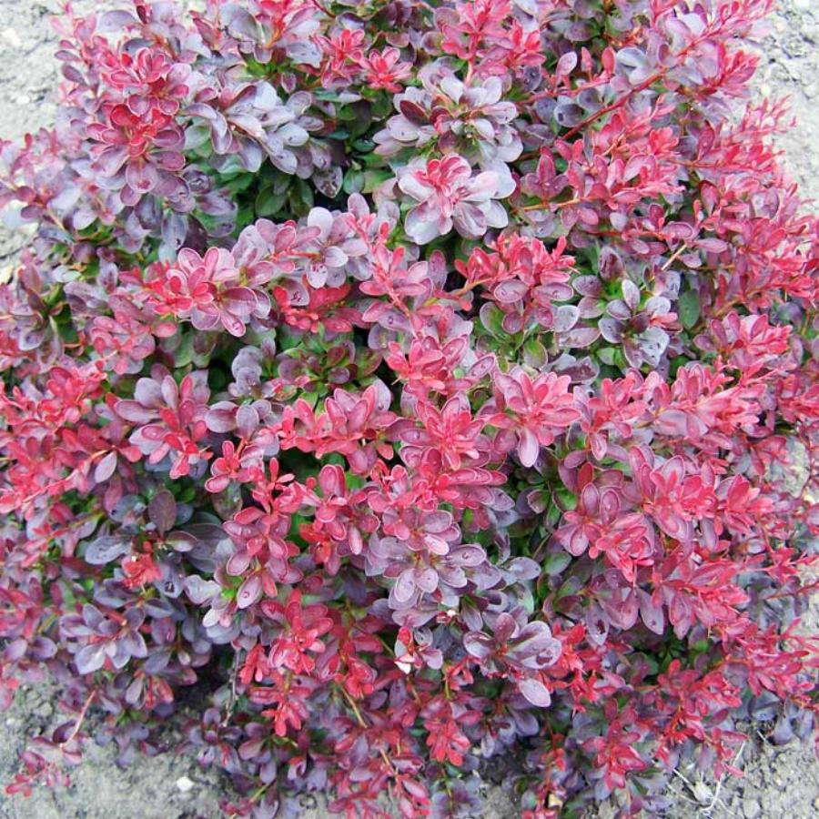 Барбарис tunbergii ‘Atropurpurea Nana’, карликовый сорт с шаровидной, затем подушковидной кроной, один из самых низкорослых барбарисов тунберга до 0,6м. высотой и 0,8м. диаметра. Листья яйцевидные, 1-2 см. длиной, насыщенно-пурпурные летом, шарлахово-красные осенью. Побеги, красиво изогнутые и почти не имеют колючек. Предпочитает посадку на солнце, в тени зеленеет.