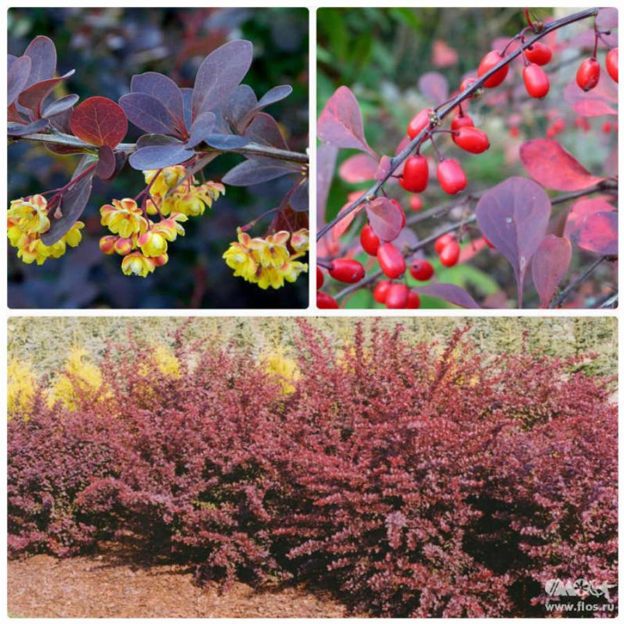 Барбарис thunbergii ‘Atropurpurea’. Высота и ширина куста 150-180 см. Крона густая, листья длиной 3-3.5 см., яйцевидные, пурпурно-красные, осенью карминно-красные. Сохраняет яркую окраску только на солнце, зимостоек. Красив в течение всего вегетационного периода. Отлично поддается стрижке. Цветение в мае.