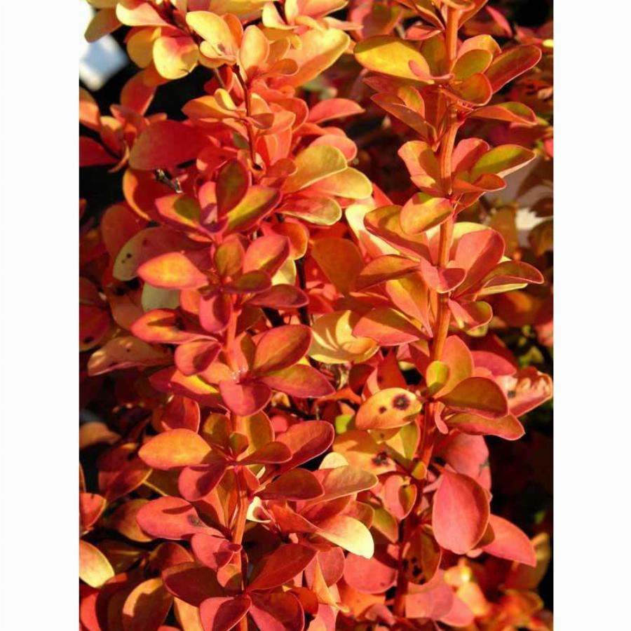 Барбарис thunbergii ‘Maria’ невероятно красивый. В разные времена года он выглядит по-особенному декоративно. Высота взрослого растения до 1,5 м, ширина 1 метр. Крона куста колонновидная. Цвет листьев меняется за сезон. В самом начале, когда только распускаются, они огненно-красные. Со временем их расцветка меняется до яркой светло-зеленой, они становятся почти желтые. По краям листочка ободок карминного цвета. Осенью куст окрашивается в оранжево-красный цвет.