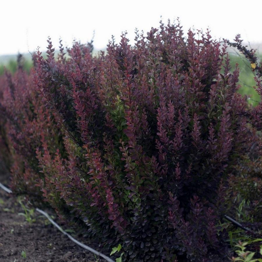 h = 1,5 м d = 0,45 м, Колючий кустарник до 1,5 м высотой с прямостоячими побегами, узкой, позднее раскидистой кроной. Листья красновато-фиолетовые, осенью становятся алыми. Цветет в мае, желтыми цветками, плоды – красные. Морозоустойчив.