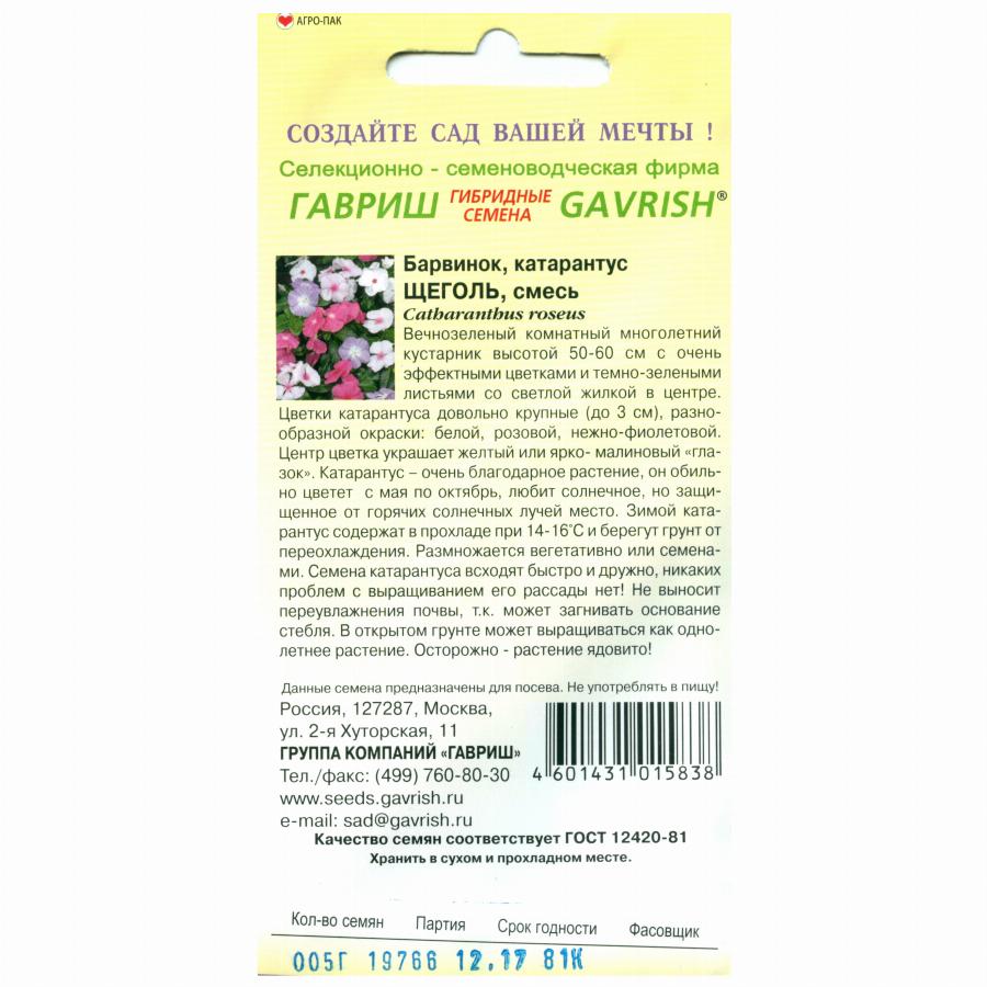 БАРВИНОК РОЗОВЫЙ ЩЕГОЛЬ 0,05 Г гавриш