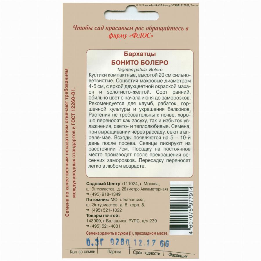БАРХАТЦЫ ОТКЛОНЕННЫЕ БОНИТО БОЛЕРО 0,2 Г флос