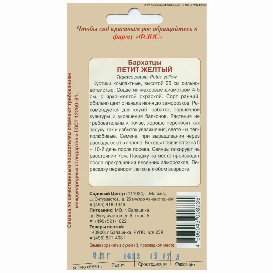 БАРХАТЦЫ ОТКЛОНЕННЫЕ ПЕТИТ ЖЕЛТЫЙ 0,3 Г флос