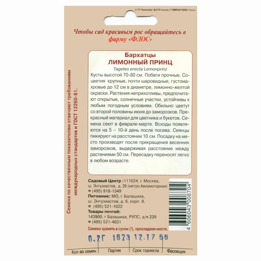 БАРХАТЦЫ ПРЯМОСТОЯЧИЕ ЛИМОННЫЙ ПРИНЦ 0,2 Г флос