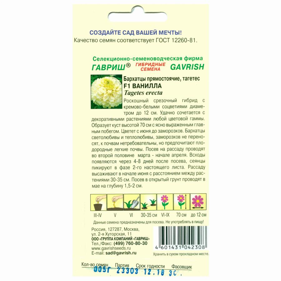 БАРХАТЦЫ ПРЯМОСТОЯЧИЕ ВАНИЛЛА F1 0.05 Г гавриш