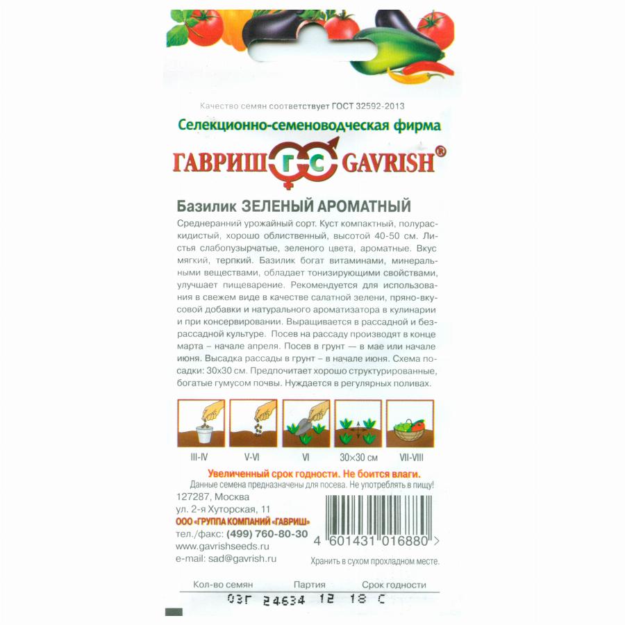 БАЗИЛИК ЗЕЛЕНЫЙ АРОМАТНЫЙ 0,3 Г гавриш