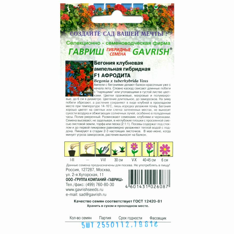БЕГОНИЯ АМПЕЛЬНАЯ АФРОДИТА F1 5 ШТ гавриш