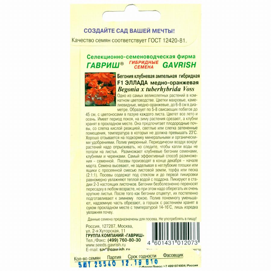 БЕГОНИЯ АМПЕЛЬНАЯ ЭЛЛАДА F1 5 ШТ гавриш
