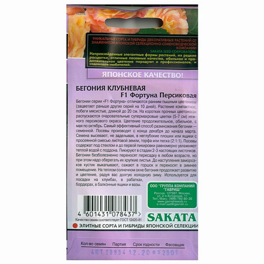 БЕГОНИЯ КЛУБНЕВАЯ ФОРТУНА F1 ПЕРСИКОВАЯ 4 ШТ гавриш