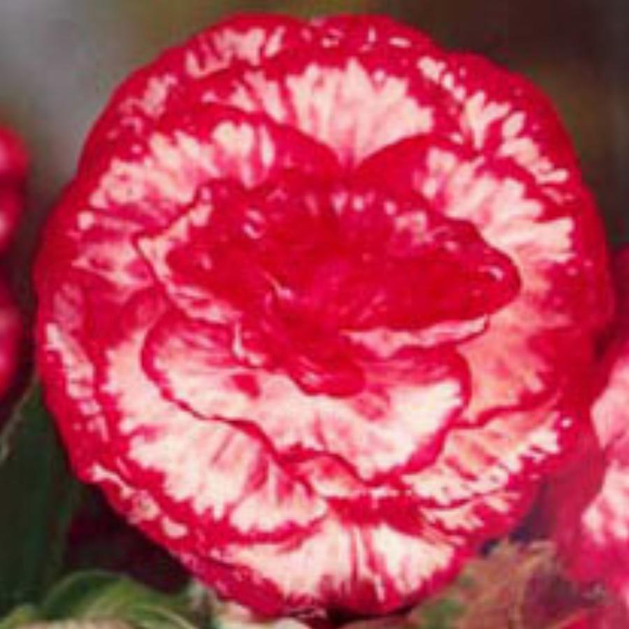 Группа двухцветных. Куст полураскидистый, высотой 20 см. Цветок махровый, алый с белыми штрихами, 12 см в диаметре. Хорошо смотрится в вазах и на клумбах.