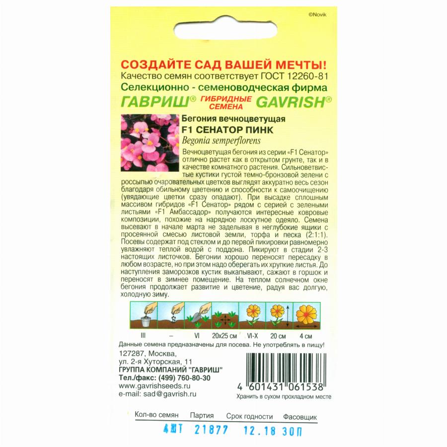 БЕГОНИЯ ВЕЧНОЦВЕТУЩАЯ F1 СЕНАТОР ПИНК 4 ШТ гавриш