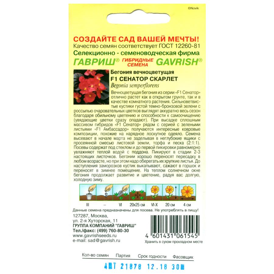БЕГОНИЯ ВЕЧНОЦВЕТУЩАЯ F1 СЕНАТОР СКАРЛЕТ 4 ШТ гавриш