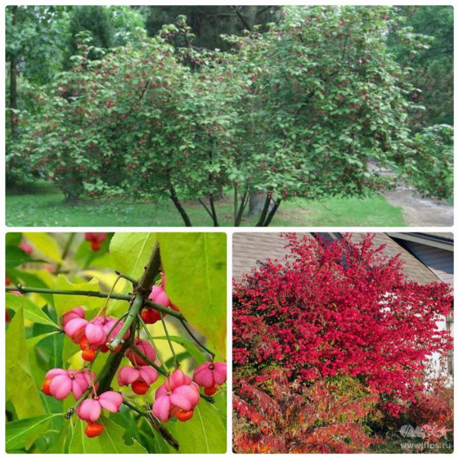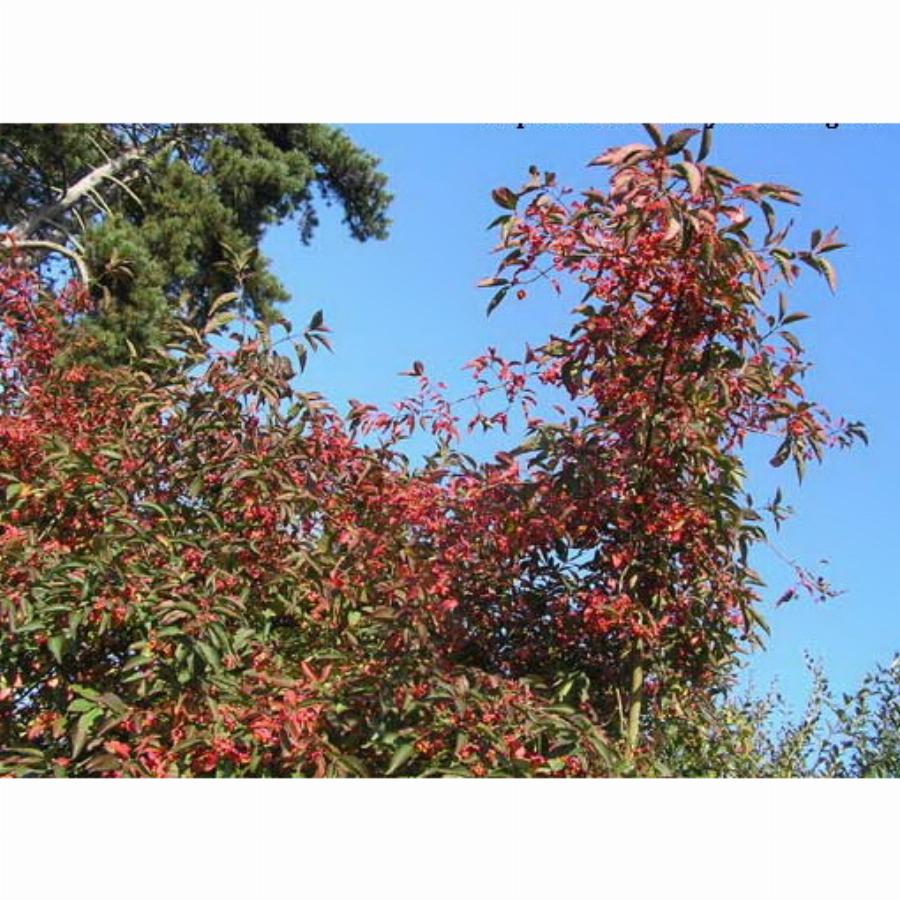 Пышный округлый по форме кустарник (или деревце) высотой 3-4 м. Многочисленные плоды (не съедобны) в виде четырехгранной капсулы оранжевого цвета появляются осенью и остаются на дереве всю зиму. Листья осенью пурпурные. Любая садовая почва. Предпочитает легкую полутень. Зимостоек.