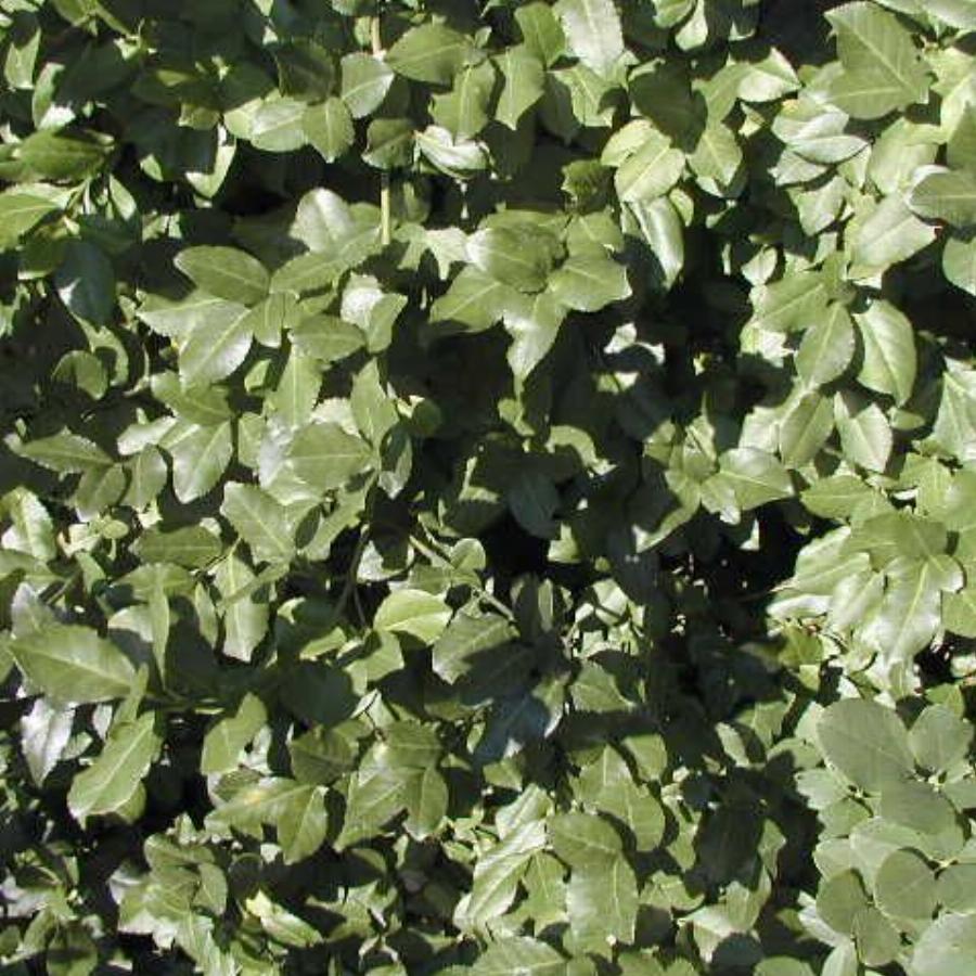 Вечнозелёный кустарник с очень густыми ветками. Высотой 0,4 — 0,6 м и более. В молодости более плоский, с возрастом становится выше. Листья супротивнорасположенные, эллиптические или яйцевидно-округлые, длиной 3 (4,5) — 6 (8) см и шириной 3,5 — 5 см, тёмно-зелёные, осенняя окраска коричнево-красная или бронзовая, с нижней стороны пурпурно-красный.