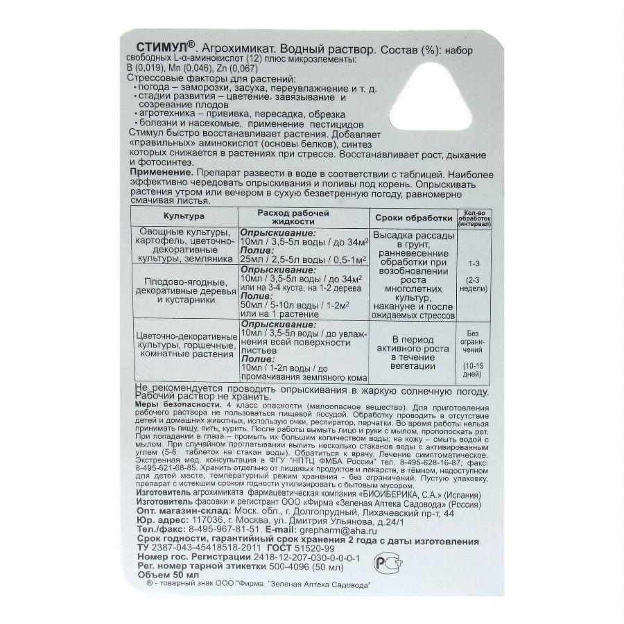 Инновационный препарат на основе свободных аминокислот. Помогает растениям пережить все стрессовые ситуации (засуха, заморозки, пересадка, болезни, насекомых-вредителей); повышает эффективность используемых пестицидов.