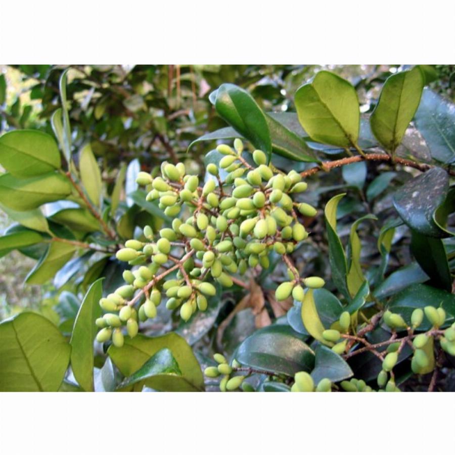 Вечнозеленый кустарник до 3—5 м высотой, родиной которого являются Япония, Корея, Китай. Листья супротивные,кожистые, широкие, с заостренной верхушкой. Белые цветки, из которых развиваются впоследствии черные ядовитые ягоды, собраны в пирамидальные метельчатые соцветия.