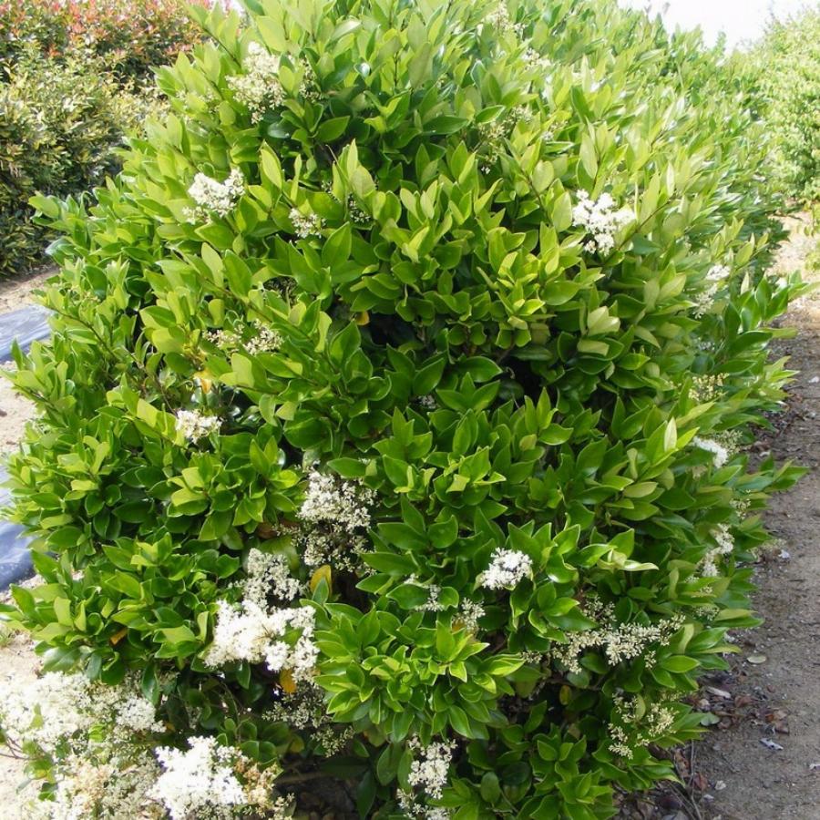 Вечнозеленый кустарник высотой до 4 м с компактной красивой кроной и гладкими ветвями. Листья небольшие, темно-зеленые, кожистые, широкие, заостренные на кончиках. Цветки мелкие, белые, собраны в метельчатые соцветия. Цветение непродолжительное, проходит в июне – июле. Плоды шаровидные, черные, ядовитые. Рост медленный. Вид теневынослив, требователен к почвенным условиям и влажности, относительно морозоустойчив, неплохо развивается на почвах, содержащих известь. Легко переносит стрижку, что позволяет формировать из кустов самые необычные формы и фигуры. Растения пригодныдля формирования небольших групп, живых изгородей, а также аллейных насаждений.