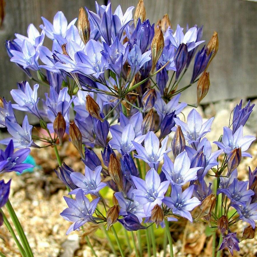 Нежные изящные ярко-синие цветки этого » калифорнийского гиацина » прекрасно дополняют цветочный ассотимент вашего сада. Луковицы следует высаживать в апреле-мае (или в августе-сентябре при покупке осенью) на солнечное место в рыхлую песчанную почву. Цветет бродиея в течение двух- трех недель в середине-второй половине лета, срезанные соцветия прекрасно смотряться в букетах. Растение зимостойко в наших условиях, но его следует беречь от замокания в течение всего года. Высота растения до 20 см.