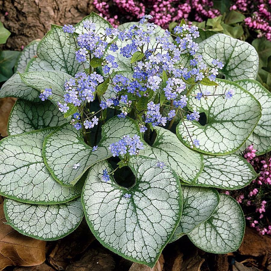 Многолетнее садовое растение высотой 0,35-0,4 м с крупной сердце-листной листвой серебристого цвета с тонким зеленым контуром и зелеными нитками прожилок. Цветки похожи на цветки незабудки. Цветет 1,5 месяца с мая по июль. Любит тень — полутень.