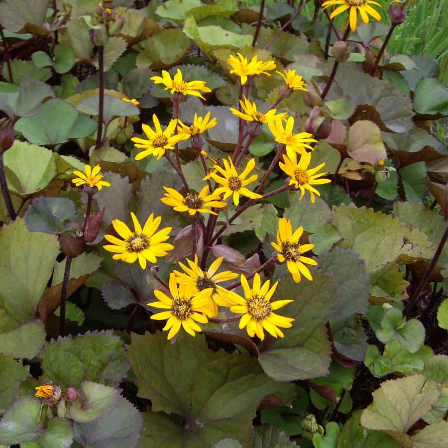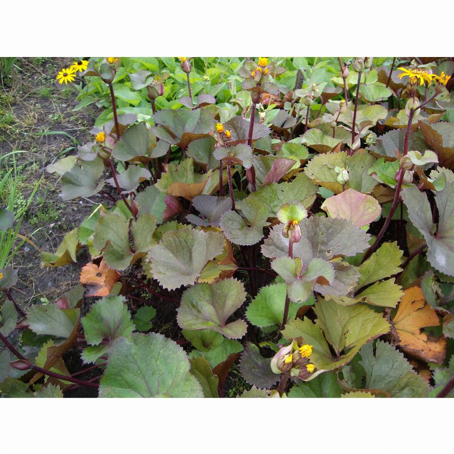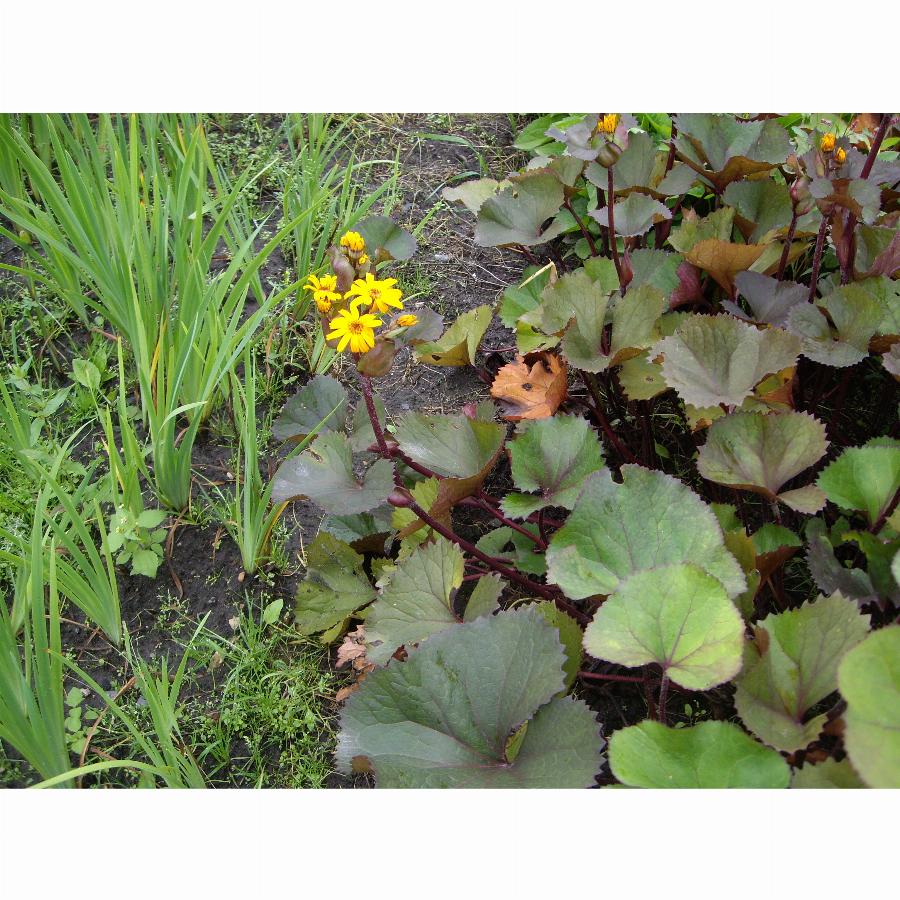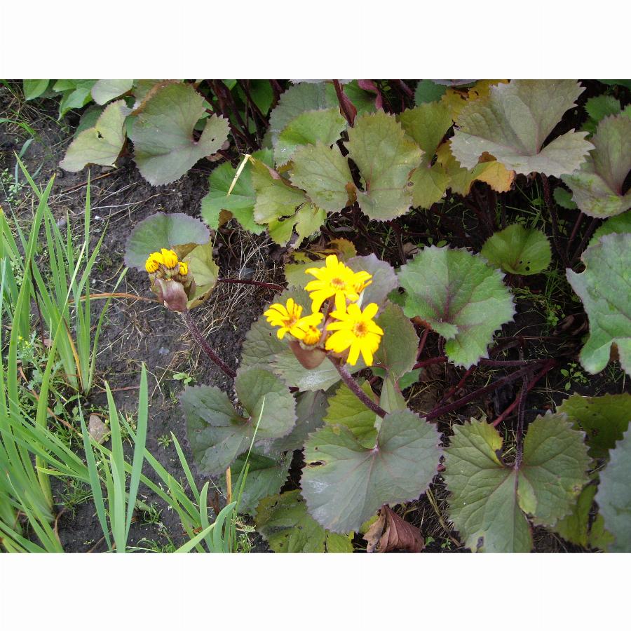 Высотой около 90 см, с широкими листьями, сверху светло-зелеными с бронзовым оттенком, снизу фиолетово-красно-коричневыми, и желтыми «ромашками». Из-за яркого контраста темной и светлой сторон листа растение выглядит очень нарядно. Цветет ‘Дездемона’ с конца августа до начала октября.