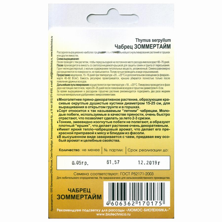 ЧАБРЕЦ ЗОММЕРТАЙМ 0,05 Г биотехника