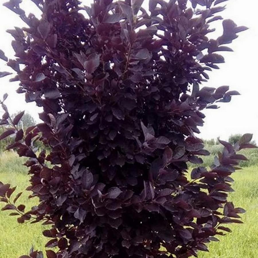 Дерево с узкой, густой пирамидальной кроной. Среднепоздний декоративный краснолистный сорт. Цветение умеренное цветками, собранными в некрупные поникающие кисти длиной 10–14 см. Ягоды блестящие, при вызревании меняют цвет с коричневого на черный. К середине лета листва приобретает насыщенную темно-пурпурную окраску, которая сохраняется до листопада. Подходит для небольших садов. Создает отличный цветовой акцент. Зона 3-4.