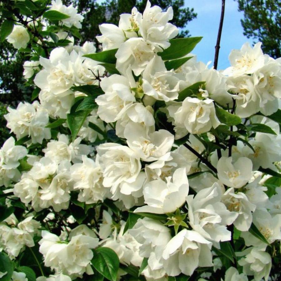 Высота куста 1,5 — 2 м, листья 2 — 3 см длиной, летом темно-зеленые, осенью — желтые, цветки простые, белые, с сильным запахом, до 3 см в диаметре, цветет в июне. Этот сорт лучше посадить в места, защищенные от ветра. Отличается вертикально растущими побегами, относительно узкой кроной с раскидистыми ветвями. Многочисленными, белоснежными цветками. Зимостойкость высокая.
