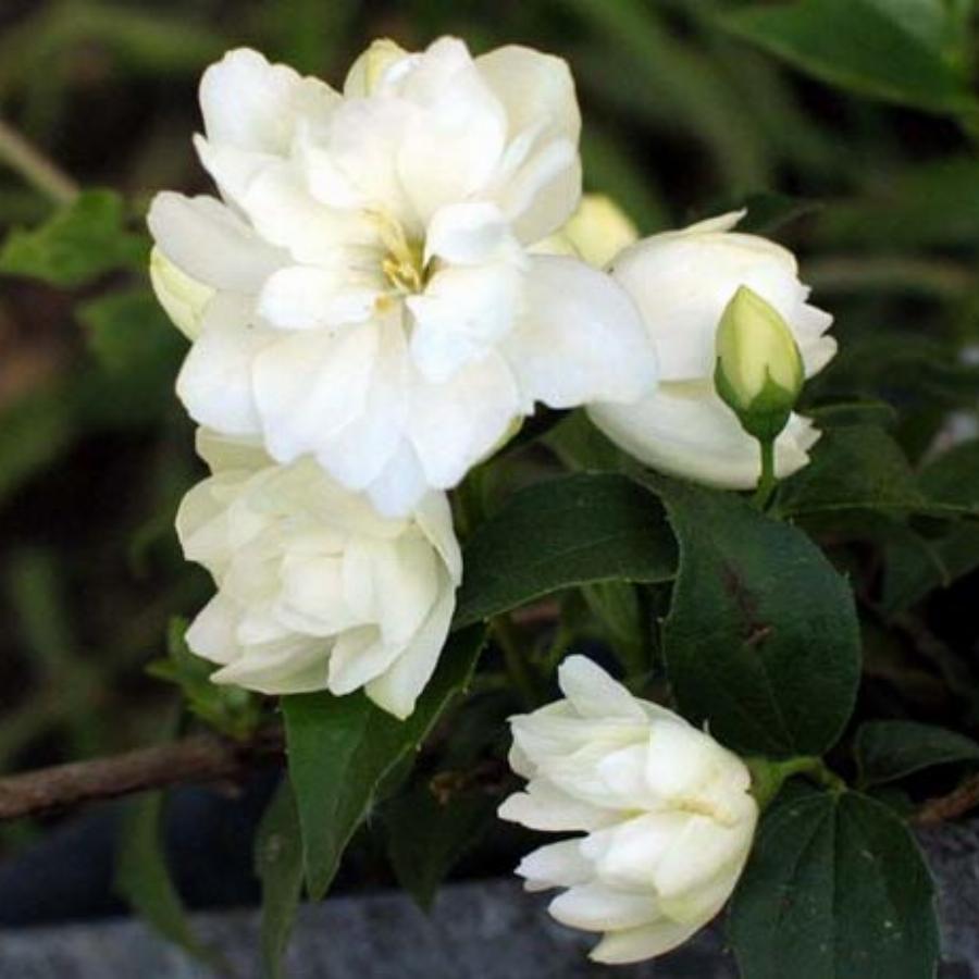 Кустарник высотой 2 м. Крона вертикальная, овальная. Цветки ароматные, белые, махровые. Цветки собраны в соцветие по 5 штук. Цветет поздней весной и ранним летом.