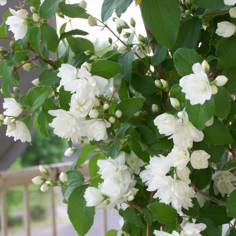 Упругий, прямой, неприхотливый кустарник с декоративными цветами. Высота до 2 м. Листья тёмно-зелёные. Цветки белые, махровые в кистях длиной 10-13 см., обильные, с приятным запахом; средне-поздний сорт. Произрастает на солнечных и в слегка тенистых местах. Сажается по одному и группами, как для стриженных живых изгородей, так и для свободнорастущих.