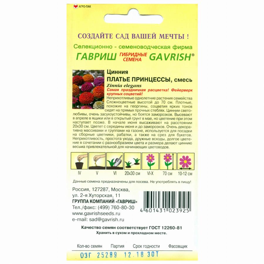 Неприхотливые однолетние растения семейства Сложноцветные высотой до 70 см. Плотные, похожие на георгины, соцветия ярких тонов сидят на прямых прочных стеблях. Цинии светолюбивы, очень засухоустойчивы, но боятся заморозков. Высевают в апреле в ящики или в открытый грунт в мае, но цветение при этом наступает позже. В начале июня высаживают на расстоянии 20х30 см. Цветет с середины июня и до заморозков. Очень декоративна массивами и группами на газоне, используется для посадки на сборные цветники, рабатки, а также на срез для букетов. Неприхотливость, простота ухода, дружные всходы, долгое цветение в сочетании с разнообразием цвета и размера делают цинию весьма привлекательной для начинающих цветоводов.