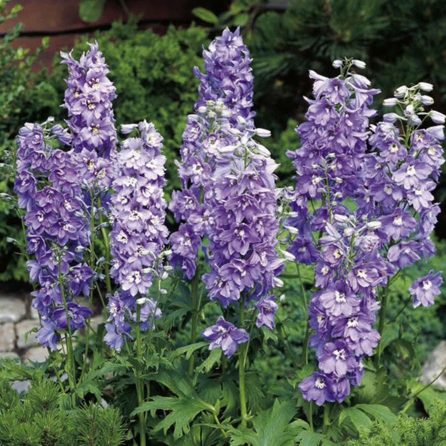 Высота растения 100 см. Многолетник, зимующий в открытом грунте. Универсальное растения для среза и пейзажного оформления. Очень сильные прочные цветочные побеги высшего качества с крупными цветами. Начало цветения (июнь-сентябрь) в первый год без периода Охлаждения. Они нуждаются не только в слегка влажной и богатой гумусом почве, но и в солнечных участках. В грунт перед высадкой дельфиниумов дополнительно следует внести компост, а после посадки его надо мульчировать опилками, корой или высадить притеняющие почву растения.
