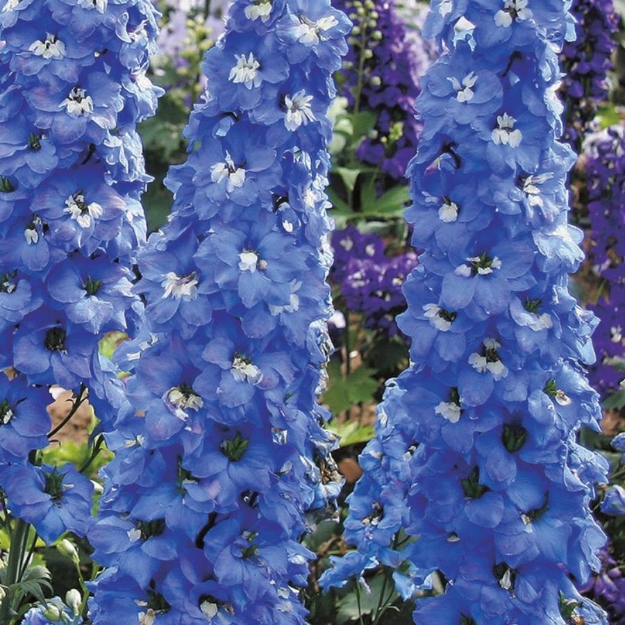 Многолетнее растение 80-90 см высотой. Листья пальчато-рассеченные. Цветки 2-3 см в диаметре, небесно-голубые, с белой серединой, собраны в плотные метельчатые соцветия. Цветет в июле-августе.
