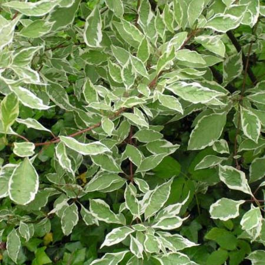 Листопадный кустарник высготой до 2-3 м с прямостоячими длинными прутьевидными побегами. Кора имеет ярко-красный цвет. Весной при распускании листьев кора зеленеет. Листья яйцевидной формы несколько морщинистые с заостренной верхушкой, сверху темно-зеленые, снизу беловато сизые. Осенью преобретают ярко-фиолетовый красный или темнофиолетовый цвет. К зиме краснеет и кора.Цветет дерен в конце мая-начале июня очень долго и обильно. Цветки мелкие белые, собраны в щитковидные соцветия, размером до 5 см. Плоды- шаровидные горошины белые с легким голубым оттенком. Цвести и плодоносить начинает с 2-3-летнего возраста.Дерен хорош в одиночных и групповых посадках, в качестве поллеска под пологом деревьев с ажурной кроной.